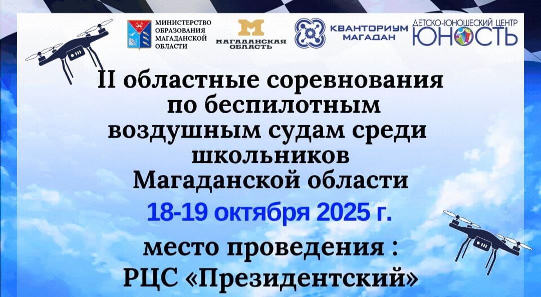 II областные соревнования по беспилотным летательным аппаратам среди школьников Магаданской области 1819 октября 2025 года в региональном центре спорта Президентский. Мероприятие проводится в рамках реализации национального проекта Молодежь и